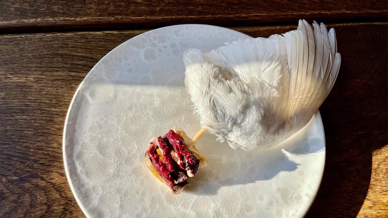 Crispy shrimp heads with beady eyes and antennae; delicately smoked salmon sandwiched between bubbly fish-skin crackers; and tender morsels of scarlet-red ptarmigan (a bird found in mountainous northern climes) breast skewered with a white-feathered wing bone are among the dishes awaiting curious diners who seek out a table at the only Michelin-starred restaurant in the Arctic.