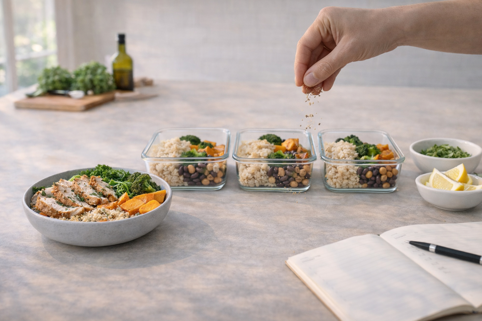 Reserve one or two weekly prep sessions for batch-cooking staples like grains, roasted vegetables, beans, and an adaptable protein to mix and match.