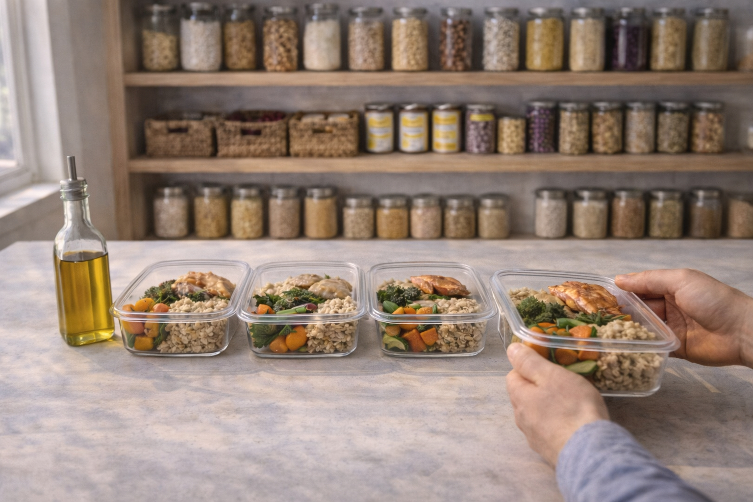 Batch prep and clear storage systems make balanced meals achievable even on busy days.