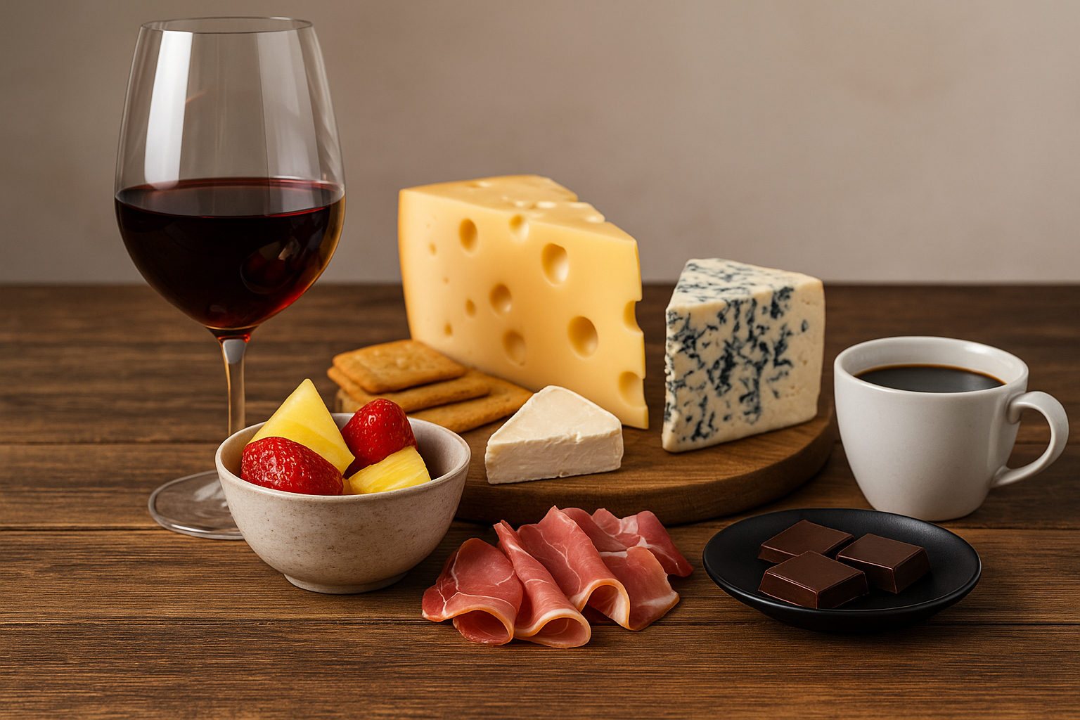 Wine and Cheese: Bold cheeses pair with rich wines, while lighter cheeses go with crisp whites.