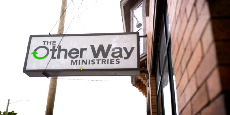 On the outside brick of The Other Way Ministries is a mural that paints a picture of the neighborhood. One side shows a scene predating civilization, with the Grand River, fish and pines. The other side highlights the logging roots along the river, the rolling hills and the growth of Grand Rapids’ West Side.