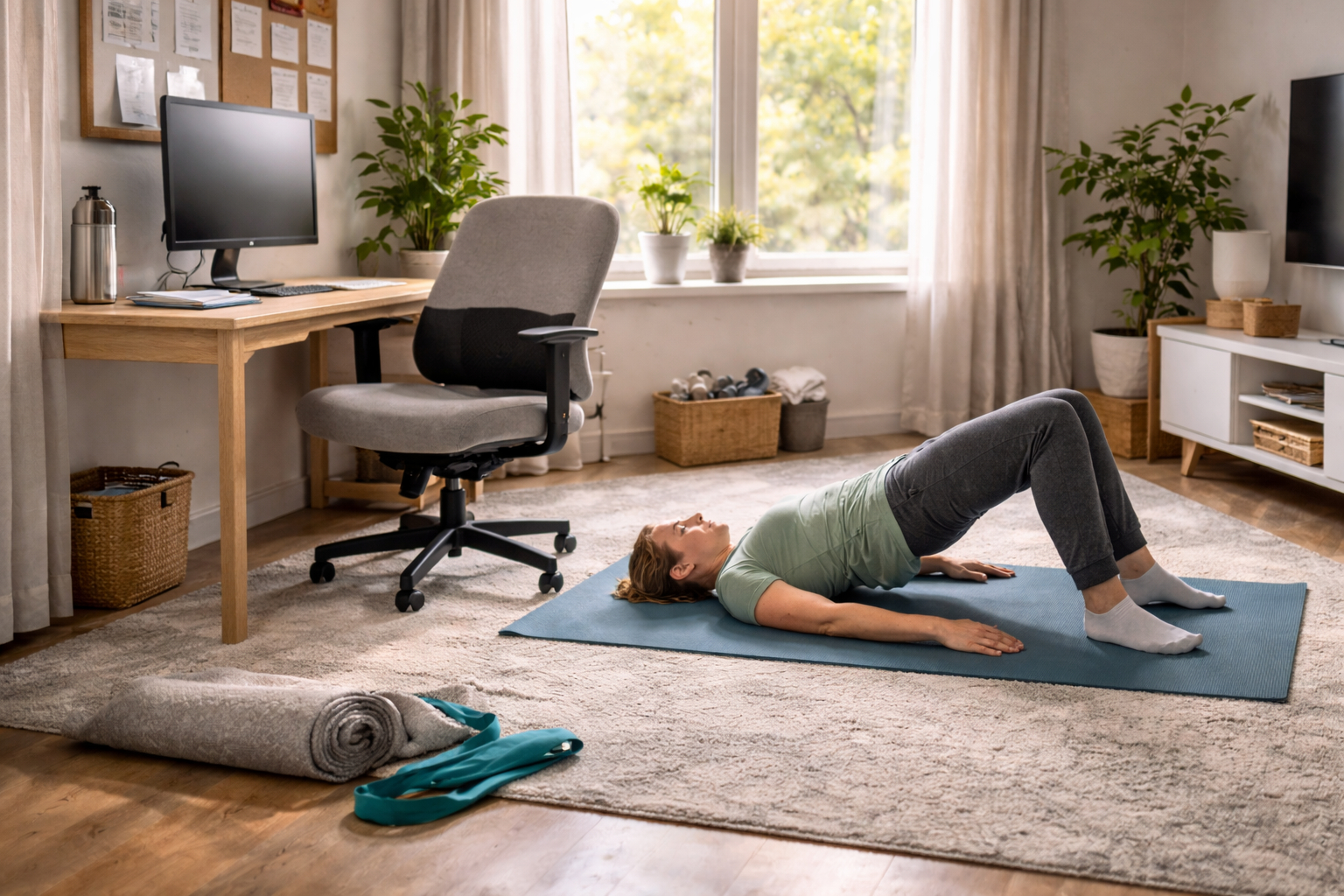 - Examples: cat-cow, glute bridges, bird-dog, and seated hamstring stretches.