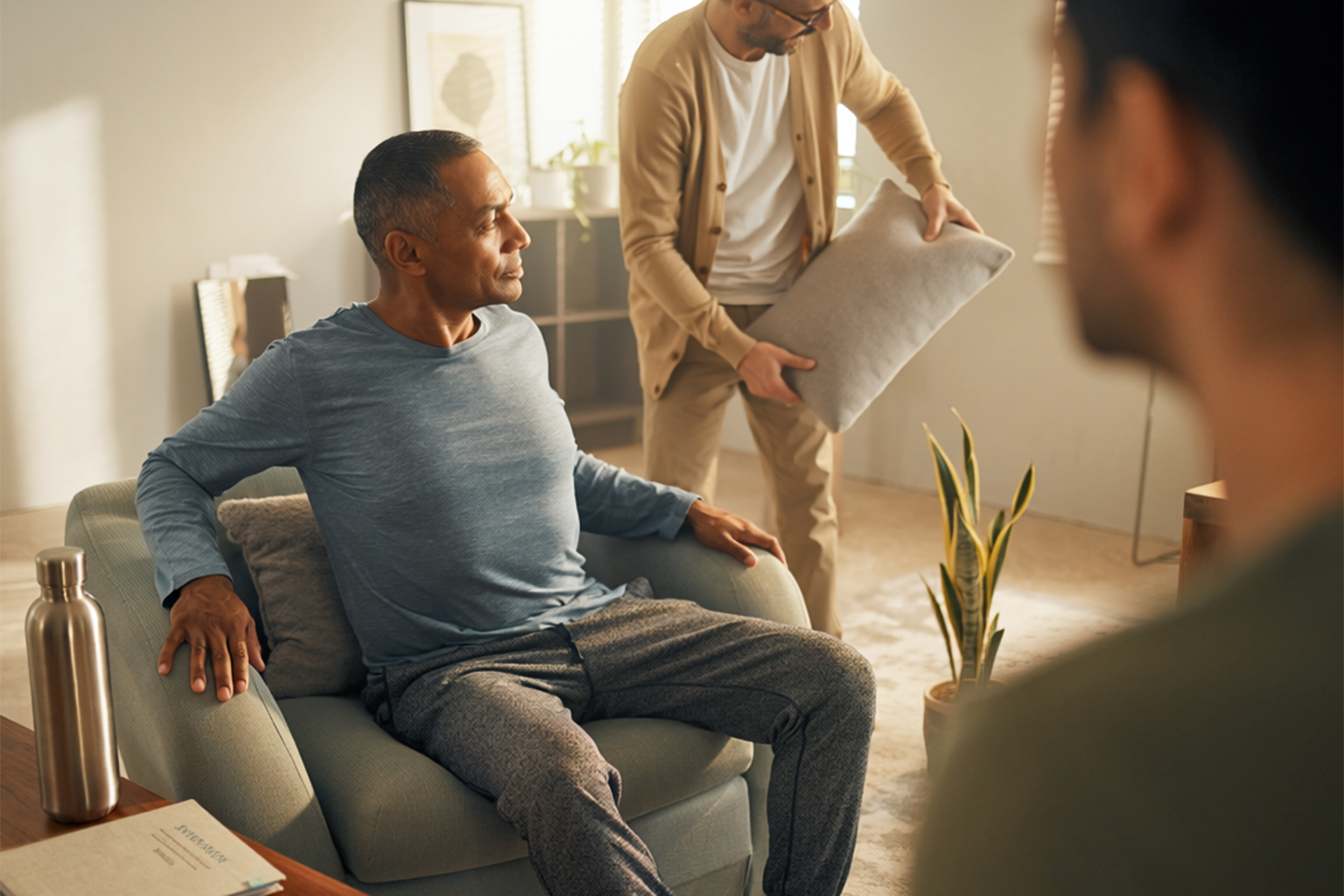 Small environmental changes can reduce strain and support healthier movement patterns. Set up a comfortable seating area with lumbar support, keep frequently used items within reach, and arrange safe pathways for walking. Temperature, lighting, and easy access to hydration and medication all influence daily comfort. These modifications make recovery and self-management more sustainable.