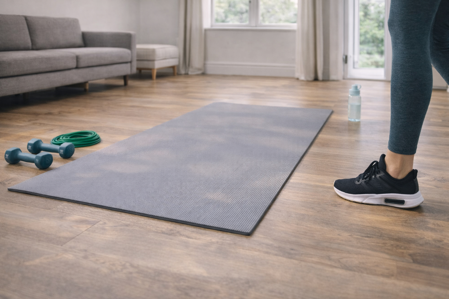 Begin by surveying the area where you plan to exercise and make immediate changes to hazards. Remove loose rugs, secure cords, and ensure there is enough clearance for movements that involve extending your arms or legs. Check lighting so you can see foot placement clearly, and verify that the surface you use is level and non-slip. Consider ventilation and temperature because comfort affects performance and the risk of dizziness or overheating.