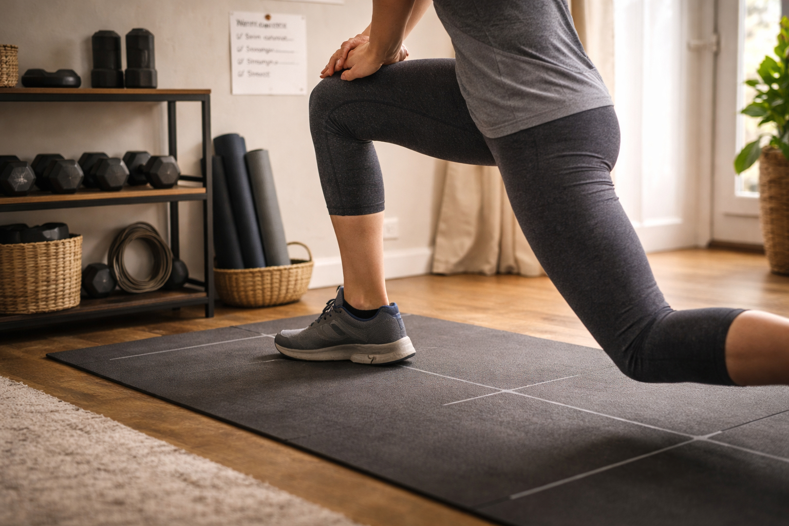 Select flooring that balances cushioning and stability; overly soft surfaces can destabilize joints, while hard floors may increase impact forces. Use non-slip mats for floor work and ensure any portable equipment has stable, level contact points. Pick gear sized for your height and strength, and avoid cluttering the space with items you rarely use. Proper footwear matched to the activity provides extra protection and traction for most indoor sessions.