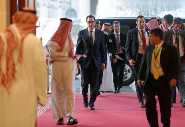“Do we have any more info on PIF late January?” he wrote to the aide, Zachary McEntee, who accompanied him on Gulf trips that involved the Abraham Fund and later joined Mr. Mnuchin’s firm. A spokesman said Mr. Mnuchin was asking about a conference sponsored by the Saudi fund that he attended as a private citizen.